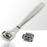 - Precyzyjnie usuwa zrogowaciały naskórek z pięt.